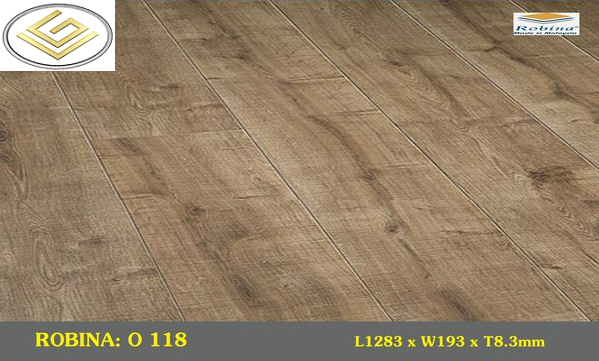 Sàn gỗ Robina O118 tạo ấn tượng ban đầu bởi tông màu gỗ Sồi truyền thống kết hợp với thiết kế bộ vân gỗ cực kỳ sắc sảo, uốn xoắn dần vào bên trong tạo nên sự đẹp mắt cho không gian sàn gỗ như thật.