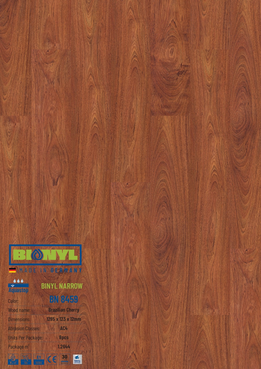 Sàn gỗ Binyl cao cấp nhập khẩu 100% từ Đức. Đây là một thương hiệu mới của năm 2020 với nhiều màu sắc đẹp. Ưu điểm nổi trội của sàn gỗ công nghiệp Binyl Đức là khả năng chịu nước tốt. Binyl là 1 thương hiệu của tập đoàn gỗ ván sàn hàng đầu tại Châu Âu là KRONOSPAN Lampertswalde. Được phân phối bởi KHO SÀN GỖ HÀ NỘI tại thị trường Việt Nam.