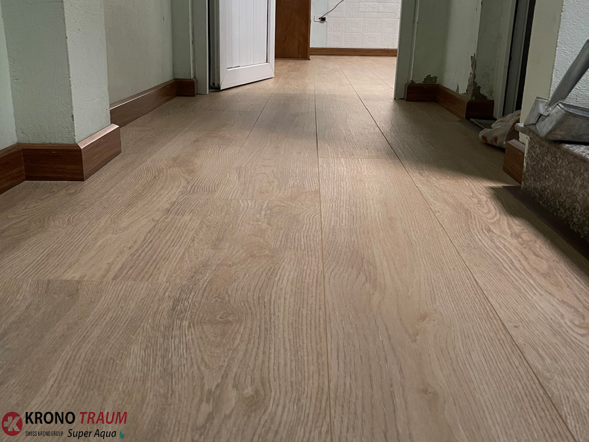 Dòng sản phẩm sàn gỗ công nghiệp thế hệ mới KRONO TRAUM AQUA là giải pháp ưu việt nhờ vào công nghệ hiện đại, các lớp nguyên liệu đảm bảo chống phồng cho bề mặt cùng hệ thống hèm khóa chắc chắn.