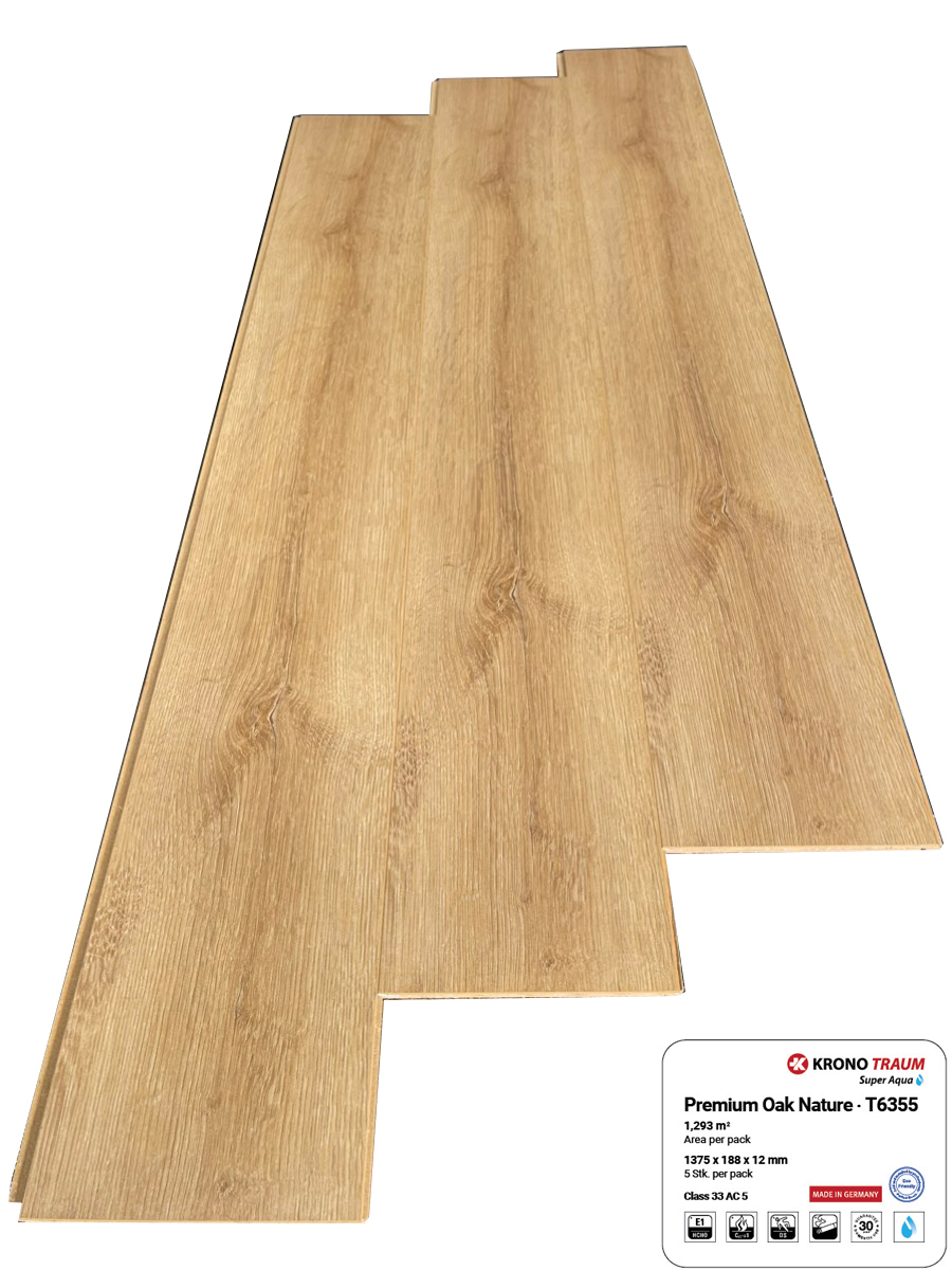 Dòng sản phẩm sàn gỗ công nghiệp thế hệ mới KRONO TRAUM AQUA là giải pháp ưu việt nhờ vào công nghệ hiện đại, các lớp nguyên liệu đảm bảo chống phồng cho bề mặt cùng hệ thống hèm khóa chắc chắn.