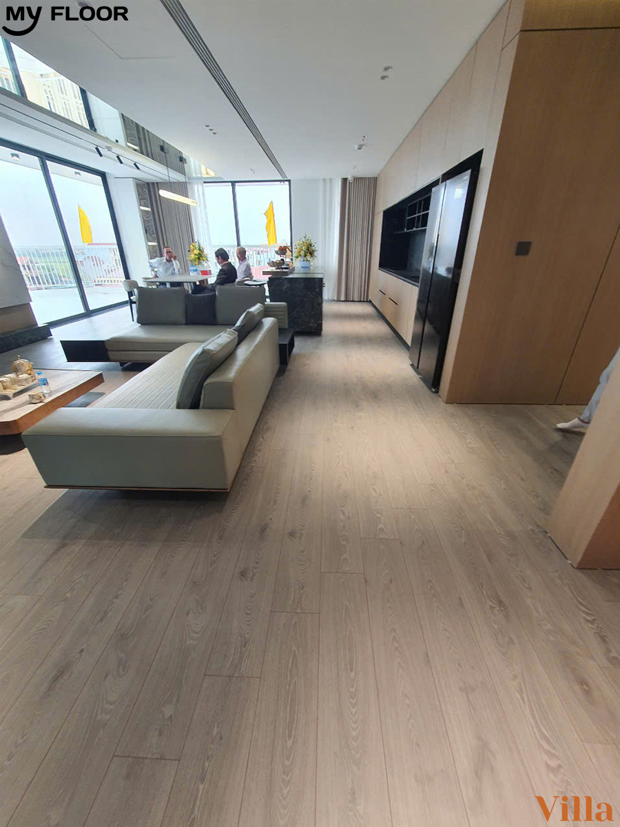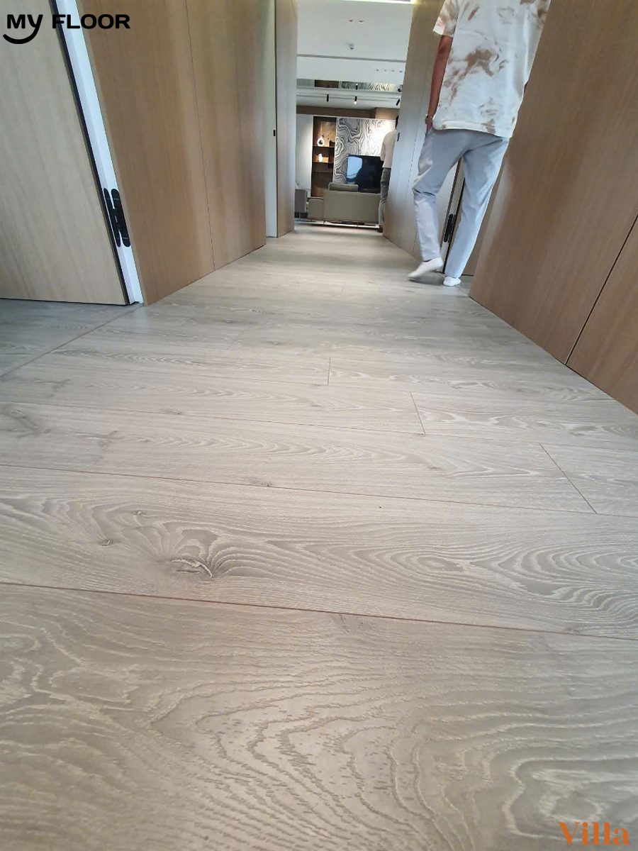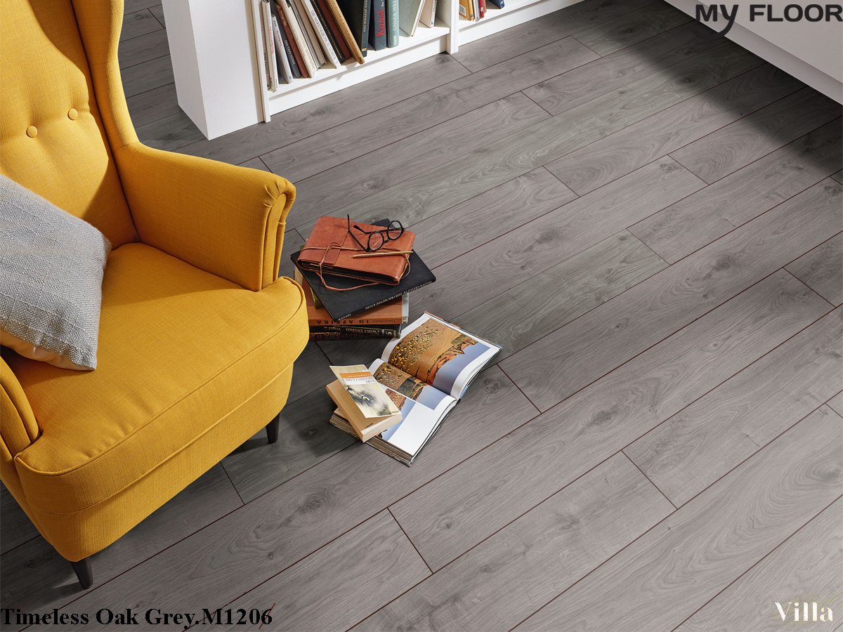 Sàn gỗ My Villa M1206 Timeless Oak Grey thuộc bộ sưu tập My Floor. Đây là loại sàn gỗ công nghiệp cao cấp thuộc dòng 12mm Villa có tiêu chuẩn bề mặt đạt AC5, Class 33 chuyên dụng để lắp đặt tại nơi có mật độ đi lại cao như khách sạn, nhà hàng, sàn thi đấu …