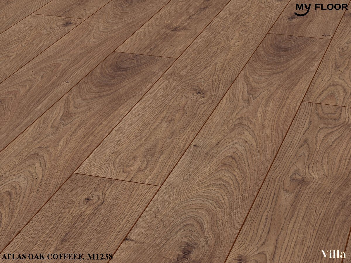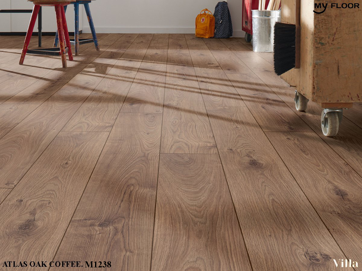 Sàn gỗ My Villa M1238 Atlas Oak Coffee thuộc bộ sưu tập My Floor. Đây là loại sàn gỗ công nghiệp cao cấp thuộc dòng 12mm Villa có tiêu chuẩn bề mặt đạt AC5, Class 33 chuyên dụng để lắp đặt tại nơi có mật độ đi lại cao như khách sạn, nhà hàng, sàn thi đấu …