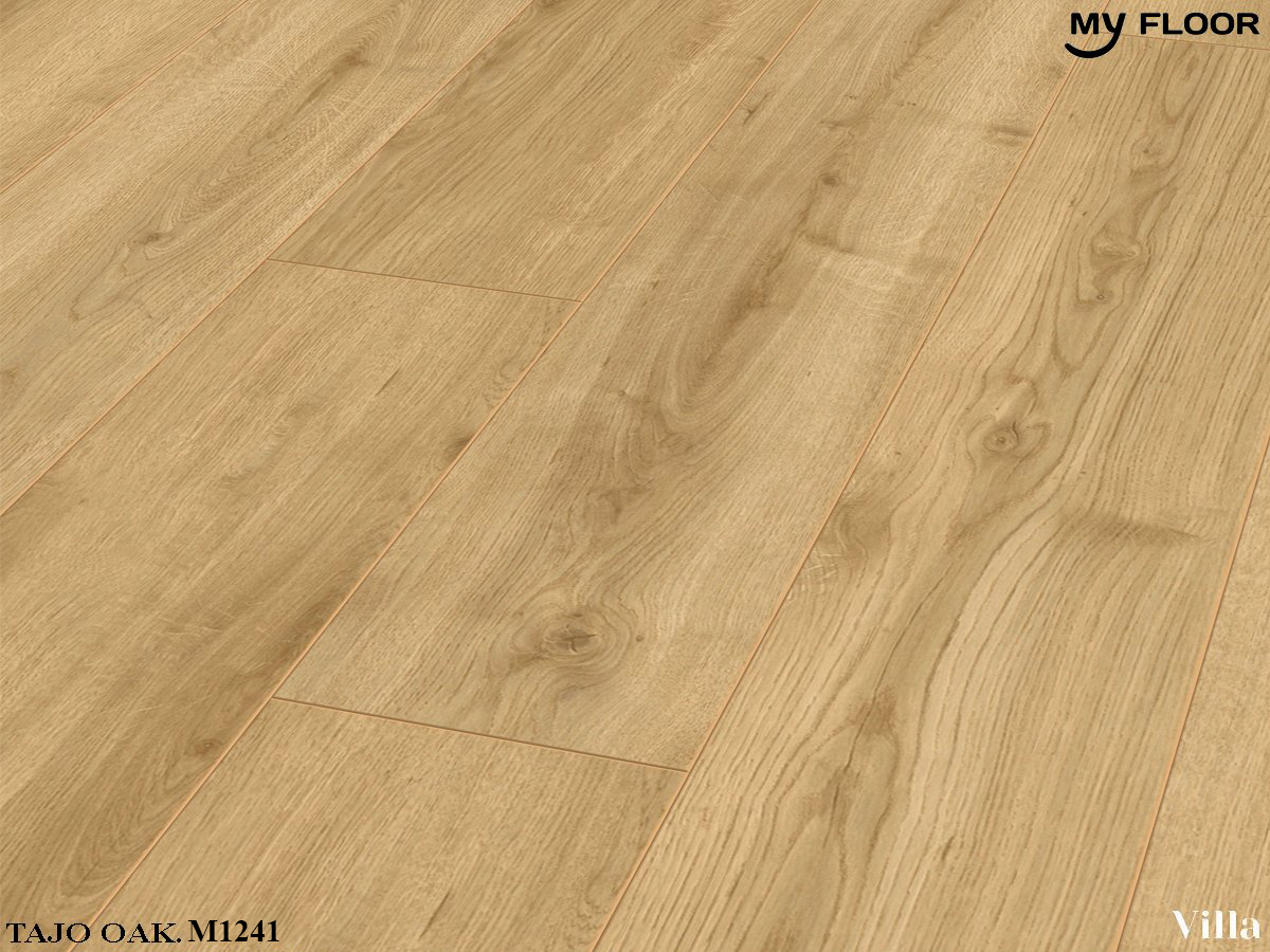 Sàn gỗ My Villa M1241 Tajo Oak thuộc bộ sưu tập My Floor. Đây là loại sàn gỗ công nghiệp cao cấp thuộc dòng 12mm Villa có tiêu chuẩn bề mặt đạt AC5, Class 33 chuyên dụng để lắp đặt tại nơi có mật độ đi lại cao như khách sạn, nhà hàng, sàn thi đấu …